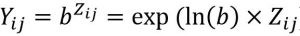 Impact d’une transformation logarithmique de base b de Y dans un modèle ANCOVA pour prédire la moyenne arithmétique de Y