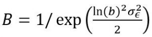 Le graphique suivant montre la valeur du biais B en fonction de la variance résiduelle du modèle dans le cas d’une transformation logarithmique de base 10.